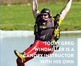 That special-needs jumper just may become a world champion one day. Windmiller was one of those jumpers who needed a little extra help when he was learning. He's the first one to laugh at some of his early jumps. "Standing on the C-130 platform before my first freefall jump, my knees buckled and I almost fainted. The jumpmaster had to grab my chest strap and ask if I was okay."