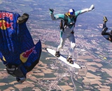 When Red Bull athlete and wingsuit flyer Dani Roman approached Tim Parrant of Team Alter Ego about photographing fellow Red Bull athlete Juan Ventura Sanchez Finguer skysurfing at Skydive Empuriabrava in Spain, he instantly said ‘yes’ without even hearing all the details. Parrant comes from a surfing and skateboarding background, so photographing a skysurfer was always on his bucket list. The opportunity became even more special when Roman decided to join the jump in a wingsuit and invited Flight-1’s Pete Allum to join them flying freestyle and on his belly on one day and Raph Coudray of the Fly Warriors to freefly with them on another.