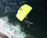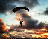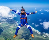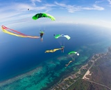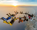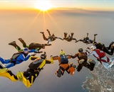 At Skydive Arizona in Eloy, (clockwise from “driver”) Carlo Manuel, Dan Baker, Sam Laliberte and Joel Tremblay perform a car-drop stunt to promote Cleared Hot’s Vet Boogie.