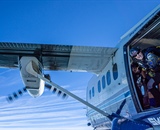 At Skydive Arizona in Eloy, (clockwise from “driver”) Carlo Manuel, Dan Baker, Sam Laliberte and Joel Tremblay perform a car-drop stunt to promote Cleared Hot’s Vet Boogie.
